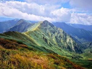 稜線がくっきり浮かび上がり、山の頂上にいることを実感します。いつも遠くから見ていたあの場所に今立っているのかと思うと、とてつもなく感動しました。